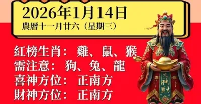 明日小運播報~2026年1月14日(星期三) 農曆十一月廿六
